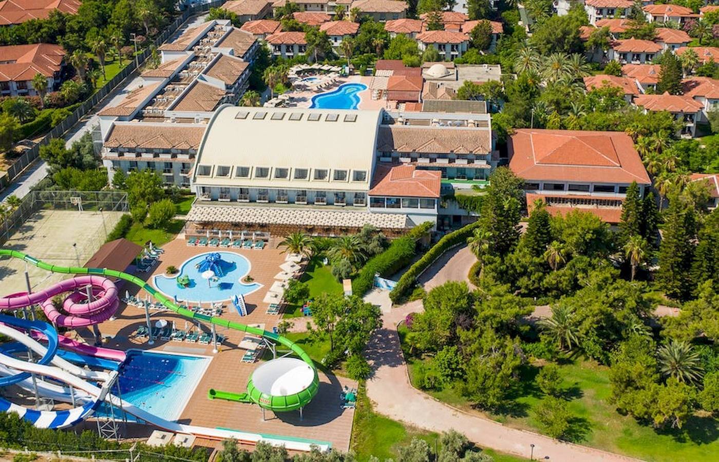 Die familienfreundliche Ferien-clubanlage Club Nena Hotel besteht aus einem Hauptgebäude und 15 zweistöckigen Häusern im osmanischen Stil und verfügt über insgesamt 590 Zimmer, Sitzecken, eine elegante Empfangshalle mit Rezeption und Geldwechsel, Hauptrestaurant mit Terrasse und 3 à la Carte Restaurants.