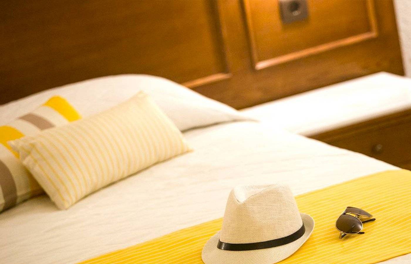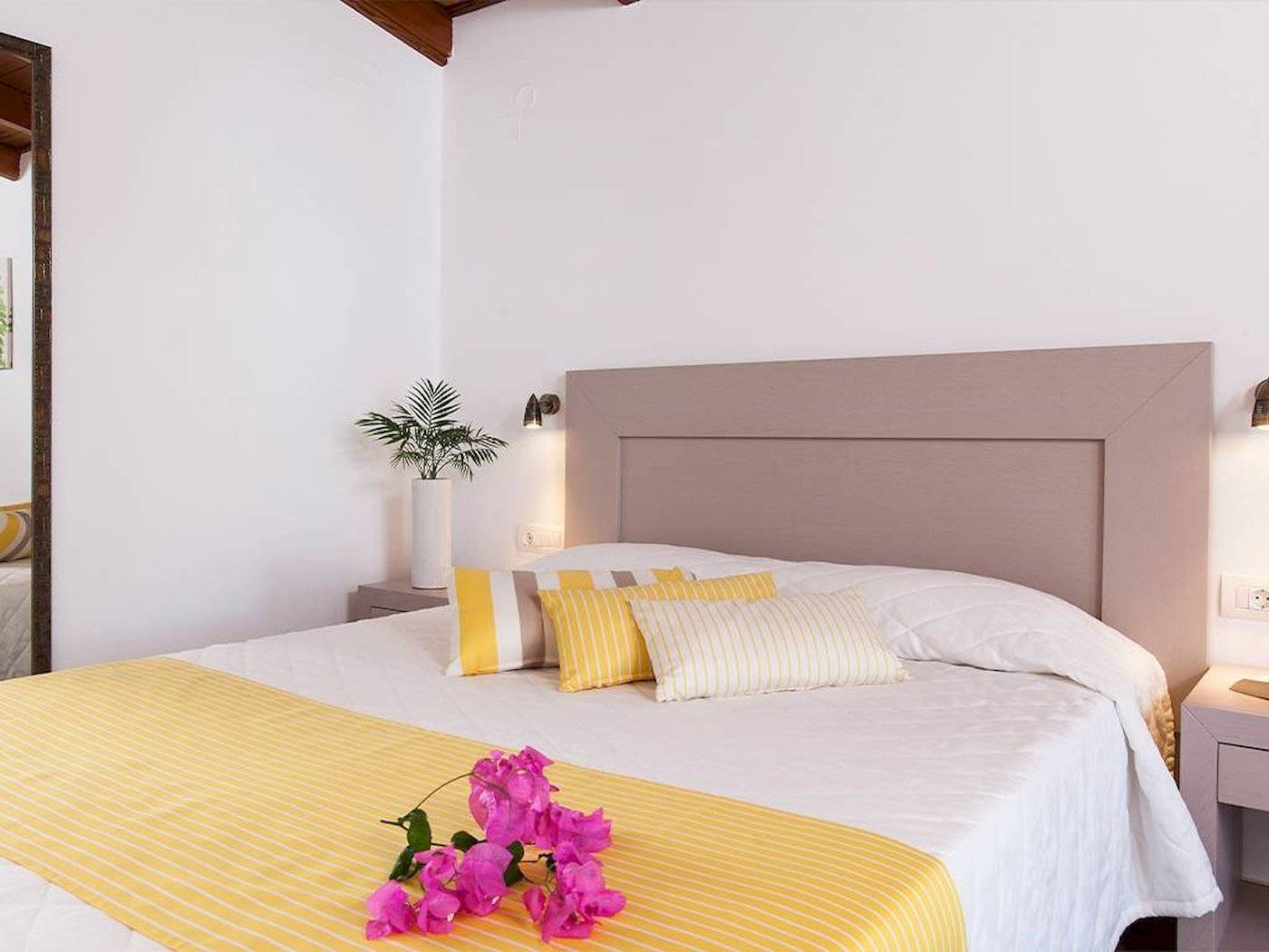 Die Doppelzimmer sind im Haupthaus untergebracht und verfügen über Bad/WC, Föhn, Telefon, Mietsafe, Sat.-TV, Kühlschrank, Klimaanlage und Balkon mit seitlichem Meerblick (DZK). Begrenzte Anzahl an Low Cost-Zimmern verfügbar (DZT). EZ=DZ zur Alleinbenutzung ohne seitlichen Meerblick (D1).